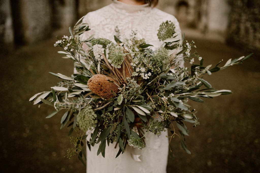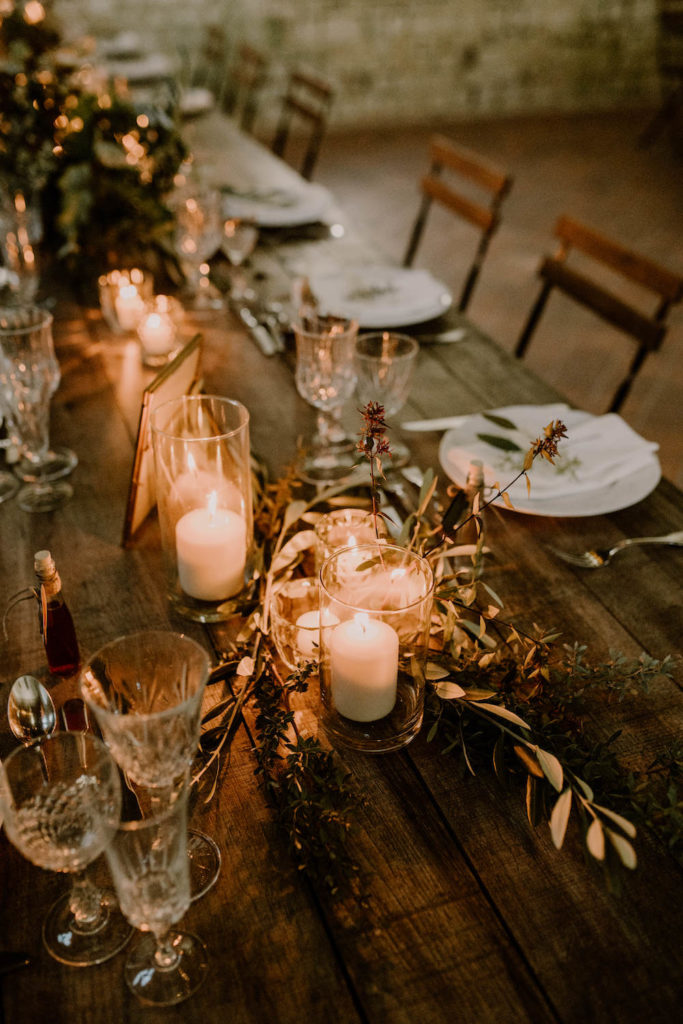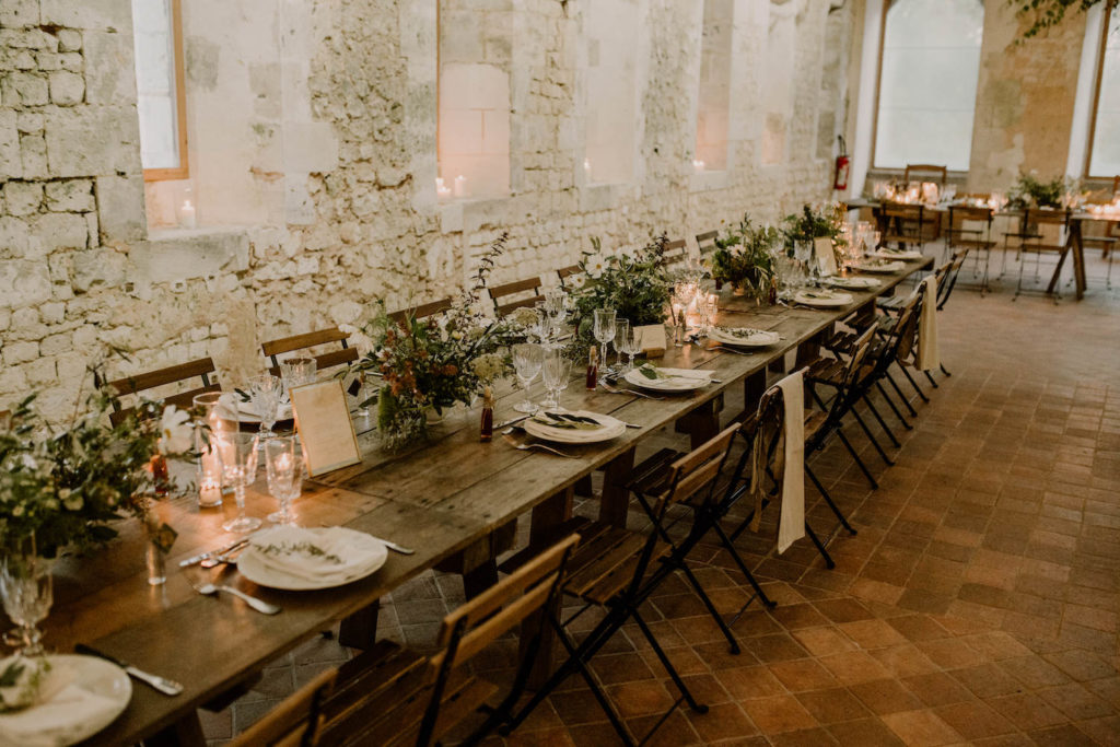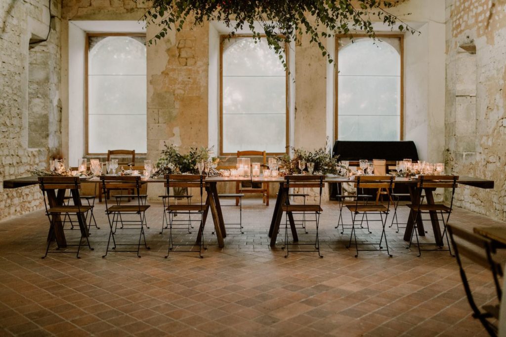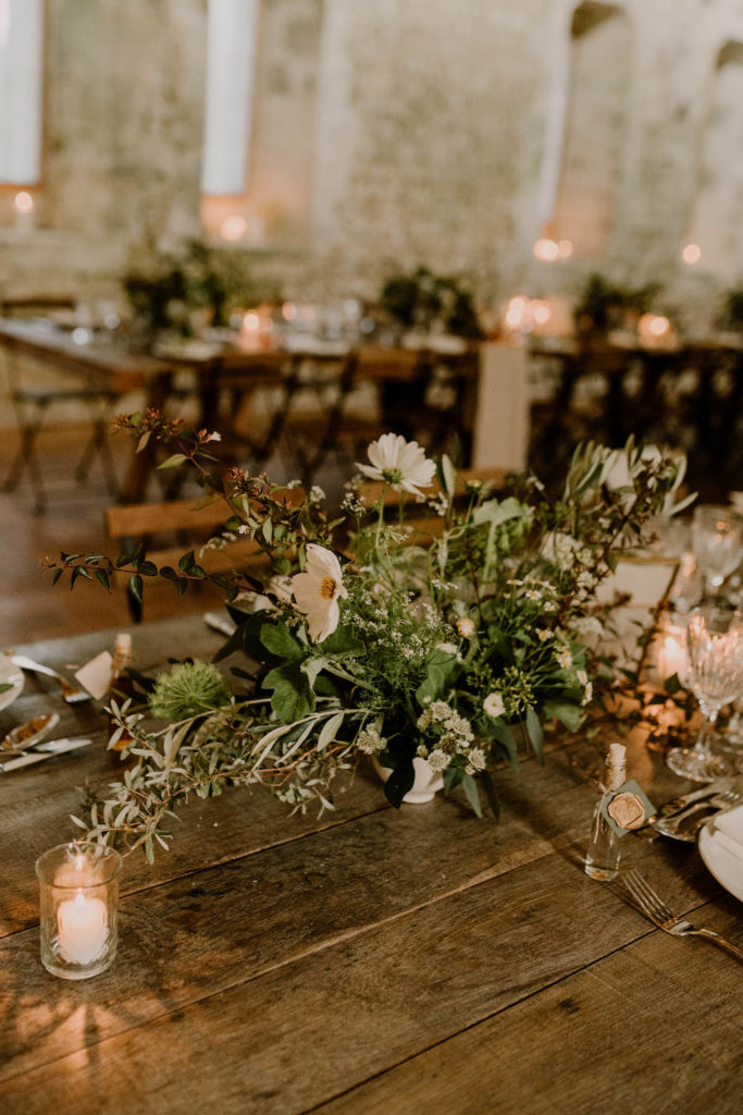 Zoom sur un mariage à la décoration végétale et sauvage, dans un lieu brut et enchanteur.