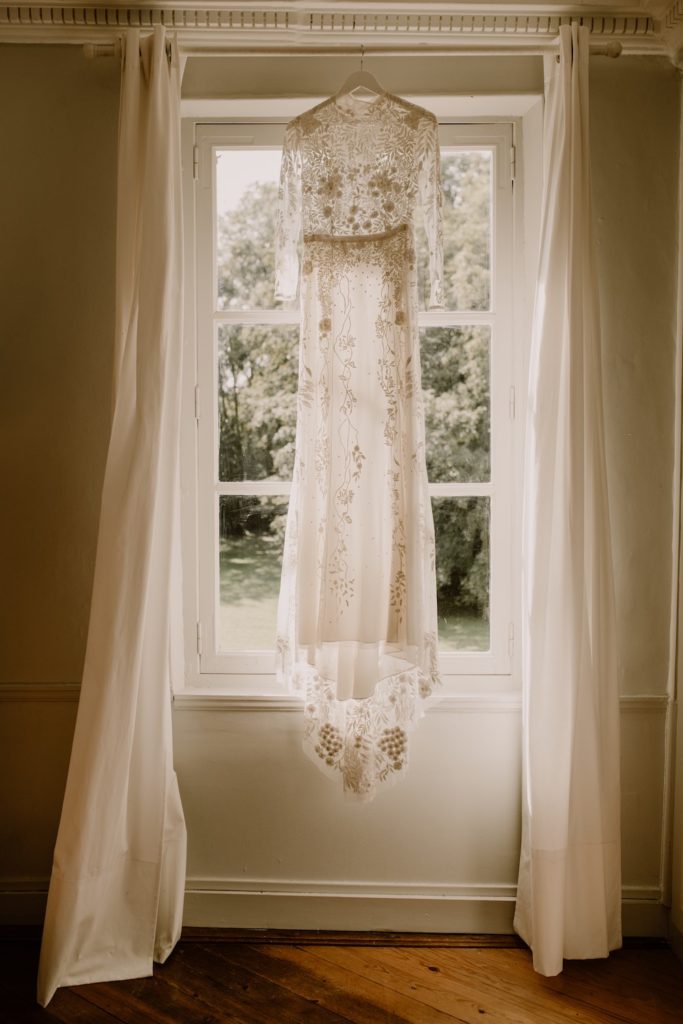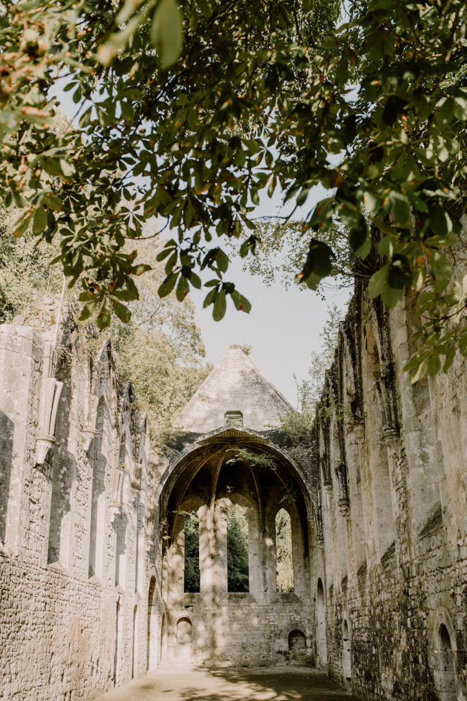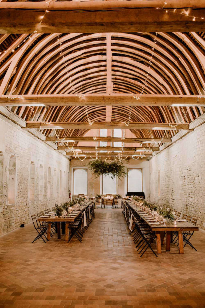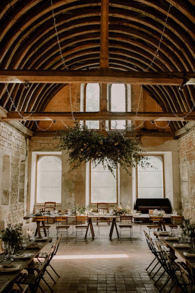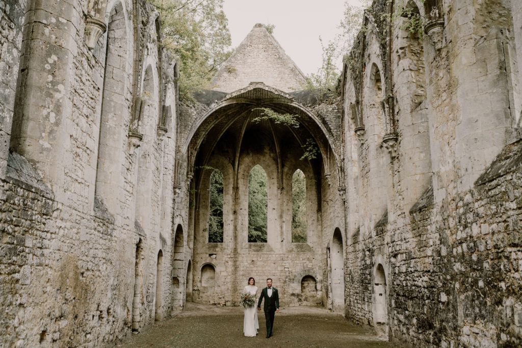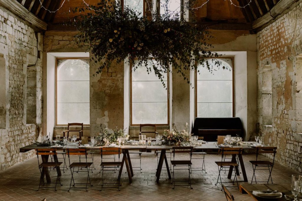 Tous les deux amoureux de la nature, des grands espaces et des matériaux bruts, ils voulaient un événement intimiste avec un petit nombre d’invités. Ainsi, nous avons imaginé un mariage très sauvage et végétal. Ils ont craqué pour l’Abbaye de Fontaine-Guérard, un lieu chargé d’histoire, brut et authentique avec ses pierres et ses poutres en bois.