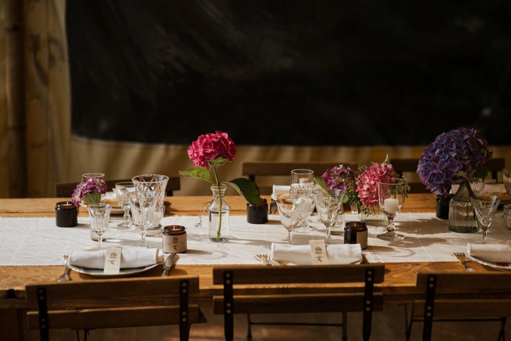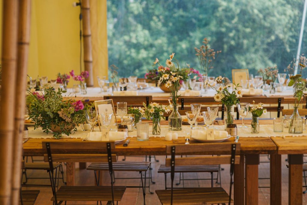 Aménager l’espace avec une tente silhouette, imaginer une décoration simple et champêtre autour des fleurs, créer une cuisine immersive avec les produits locaux, sélectionner les prestataires de talents de la région.