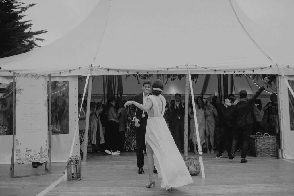 De ce mariage, nous retiendrons l’odeur des embruns et les couleurs de la côte d’Emeraude. Cette vue à couper le souffle qui vous inspire. La robe de Clémence tellement originale et créative. Sans parler de l’open bar sous les étoiles, les braseros et surtout cette ambiance de folie.