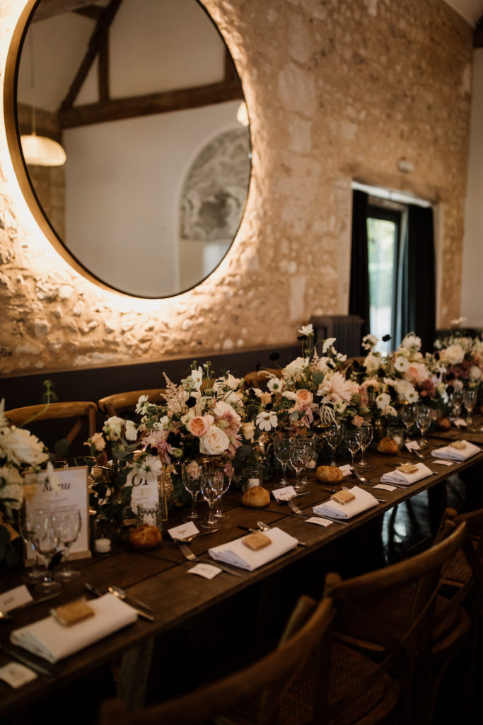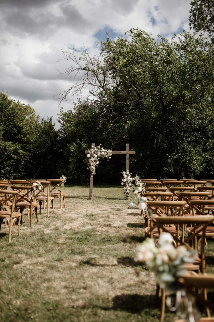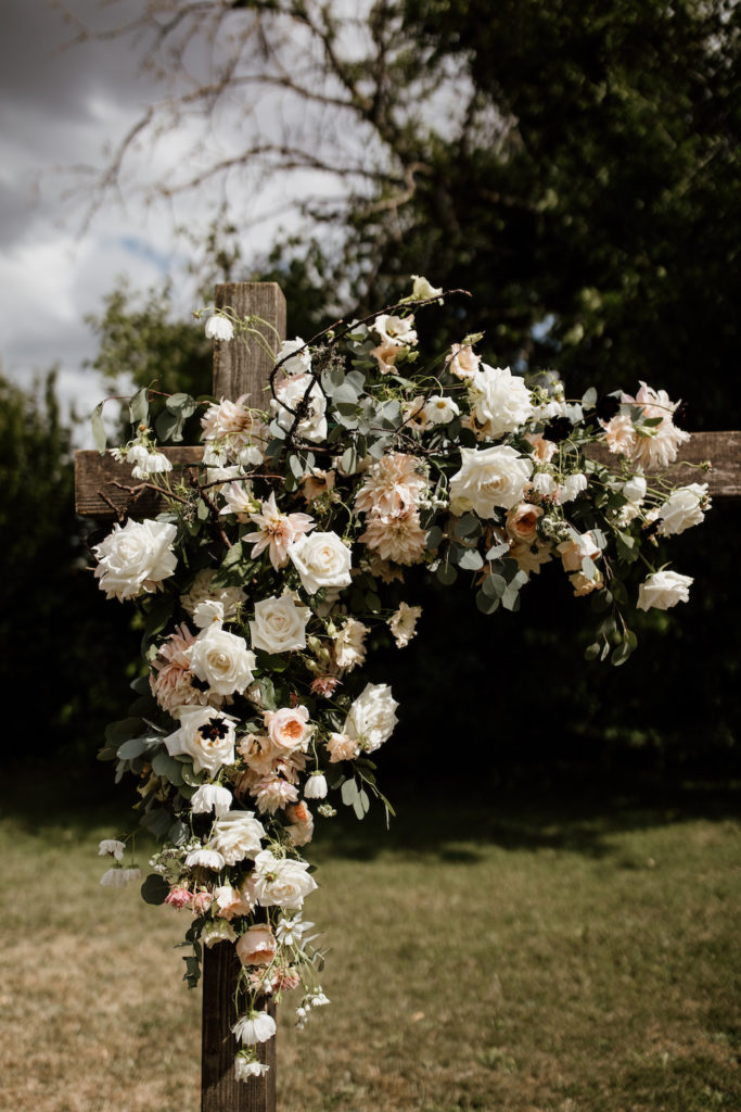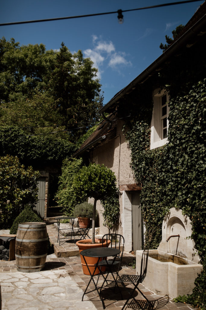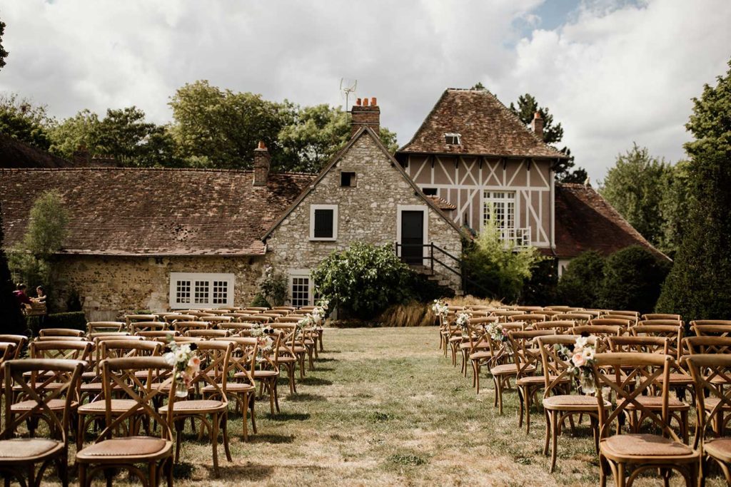 Un mariage ponctué par une cérémonie laïque dans le beau jardin de La Dîme de Giverny, un cocktail dans le patio, un dîner dans la belle propriété et enfin, un dessert sous les étoiles et les guirlandes guinguettes.